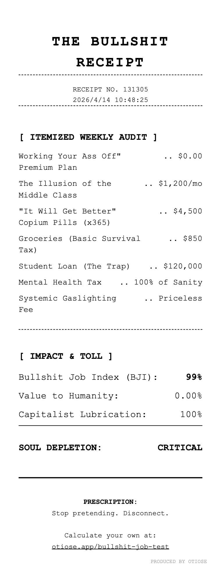 Audit Result | The Bullshit Job Test | Calculate Your Corporate Burnout