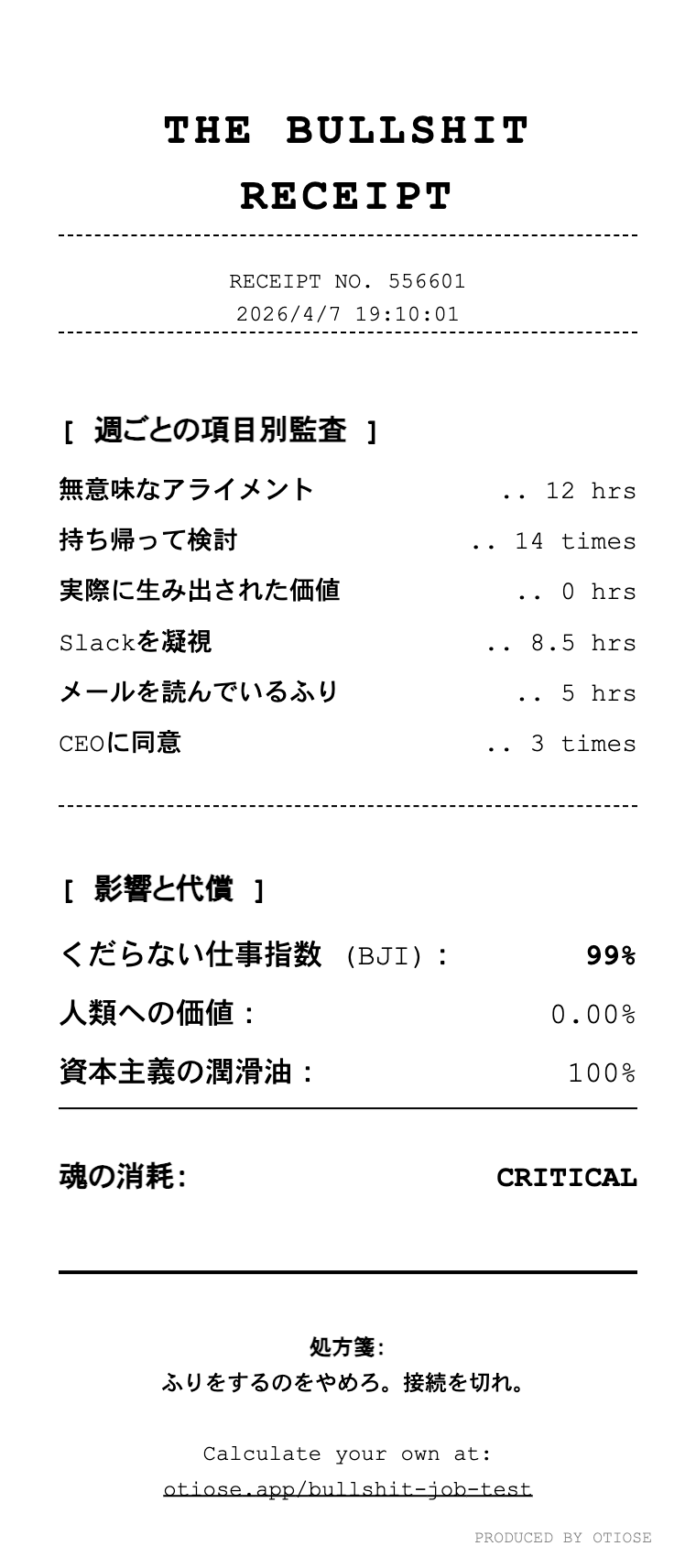 The Bullshit Job Test - Shared Receipt