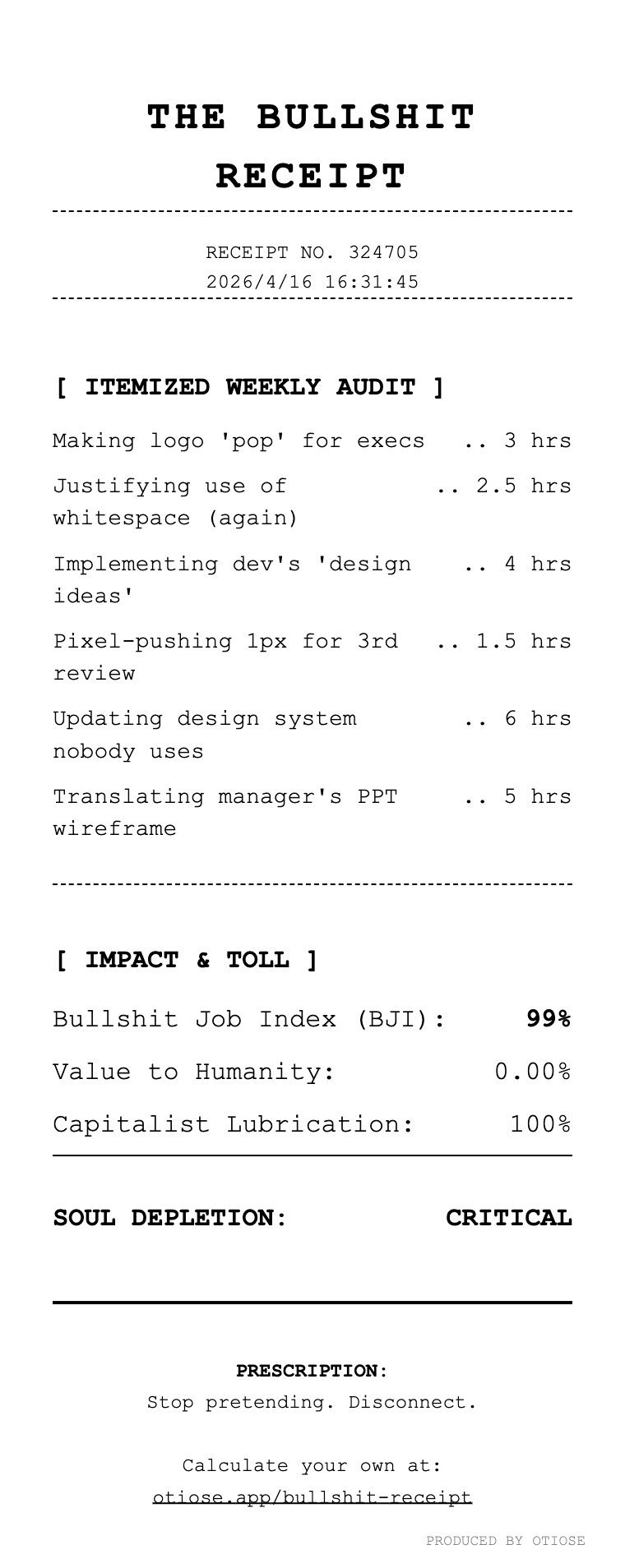 Audit Result | The Bullshit Receipt | Calculate Your Corporate Burnout