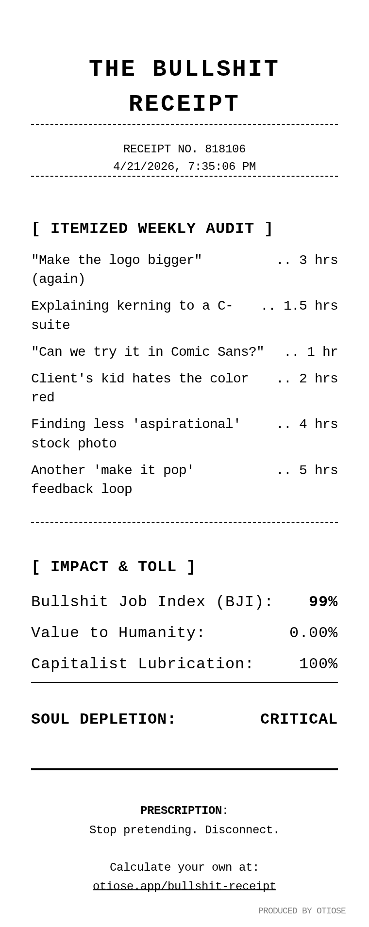 The Bullshit Receipt - Shared Receipt