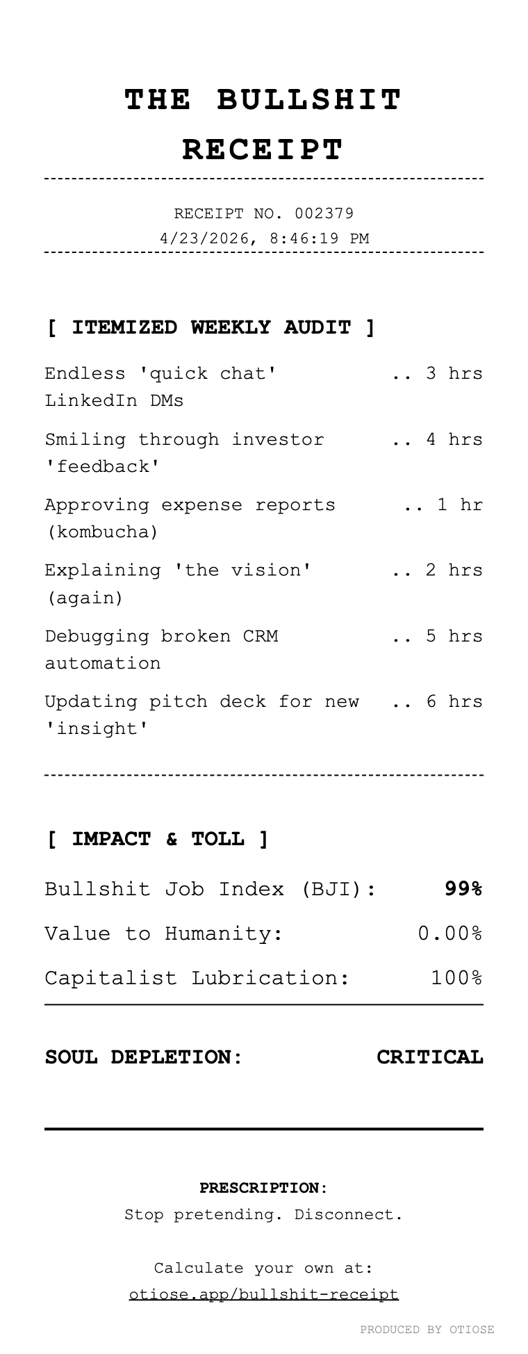 Audit Result | The Bullshit Receipt | Calculate Your Corporate Burnout